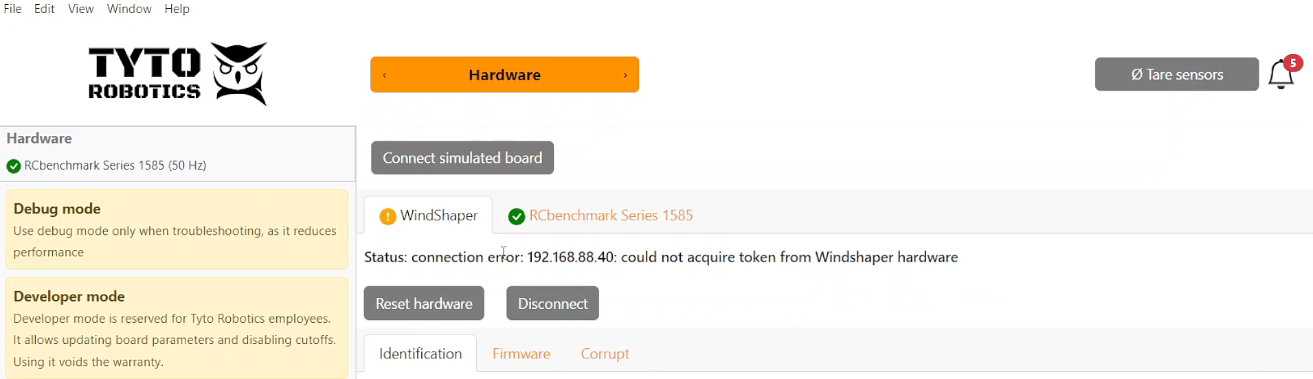 Step 3: Restart the Flight Stand software, and reset the WindShape hardware. It should now connect to the software.
