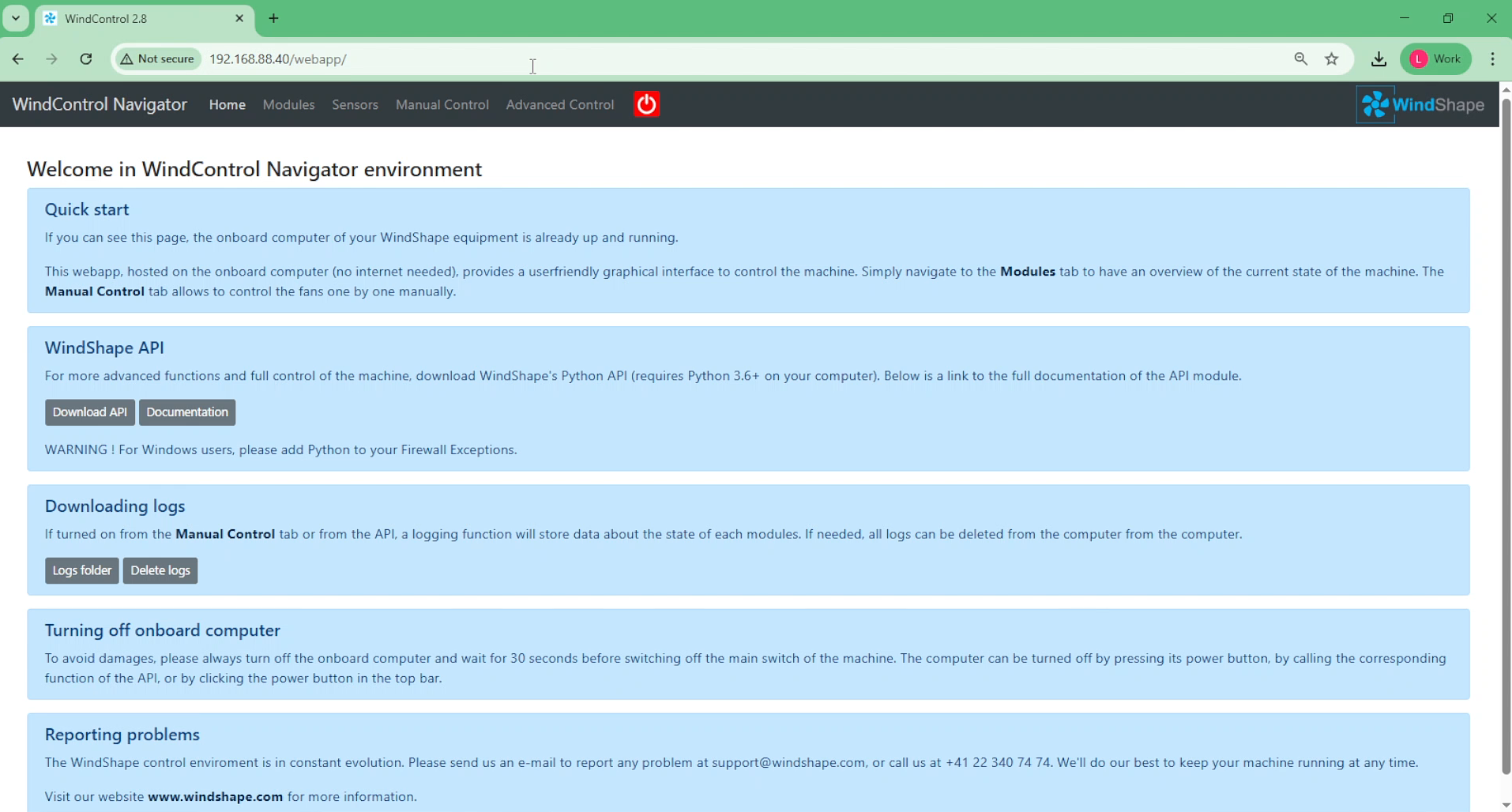 Test connectivity by navigating to the WindControl GUI in your internet browser, IP: (192.168.88.40).